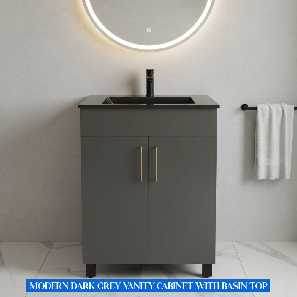 Modern Dark Grey Vanity Cabinet with Basin Top