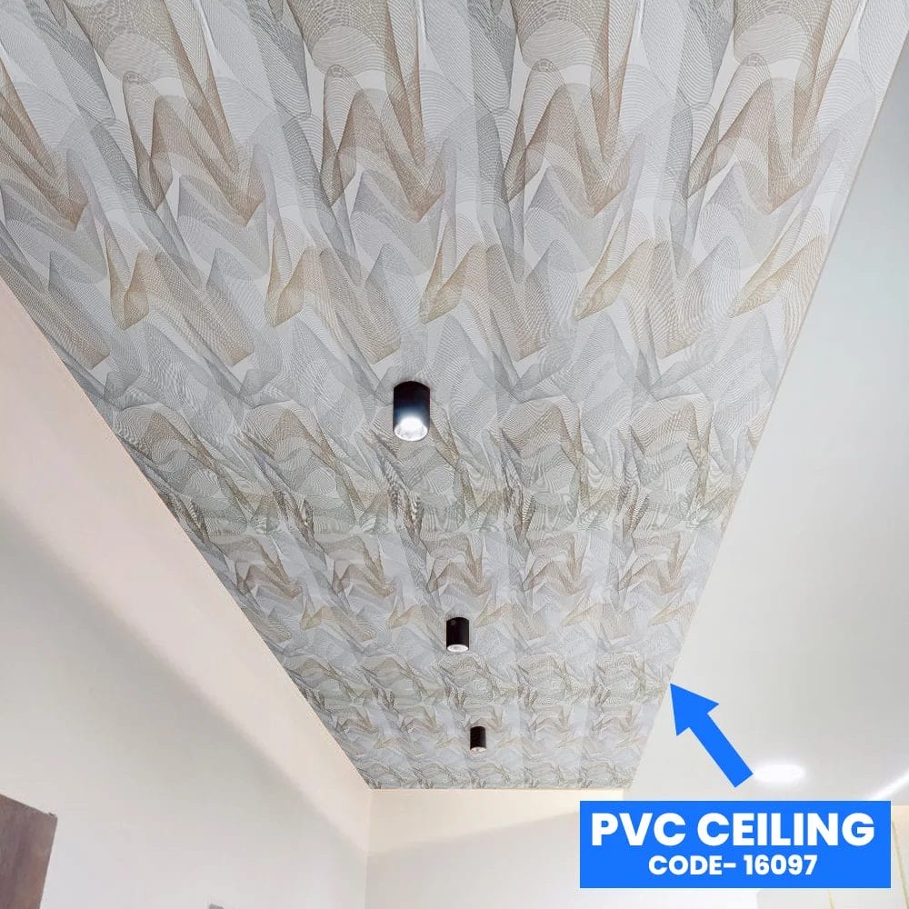 • Colour Design: Beige & Gray Flowing Pattern PVC Ceiling