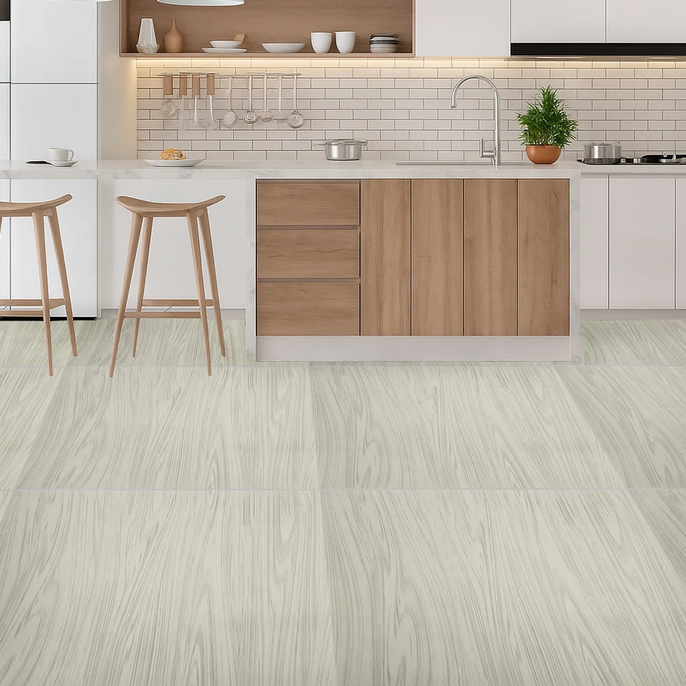 TheViva Line Tiles – Glossy Polished Porcelain – 600×600mm | A-Grade | FTIL135 offers a unique blend of natural beauty and strength. With its wood-inspired grain texture and soft grey finish, this tile adds warmth and modernity to any interior.